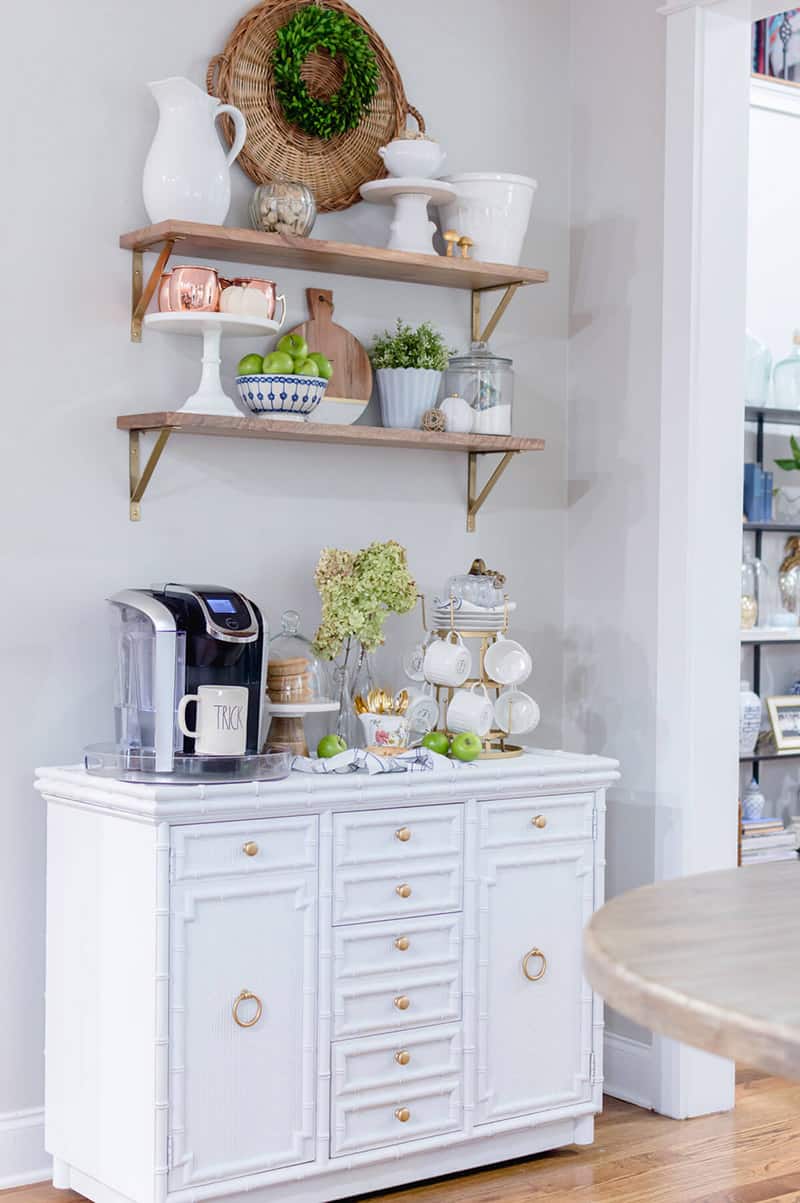 10 – DIY Simple Coffee Bar Design – Another simple and easy DIY coffee bar station you can create with any piece of furniture.